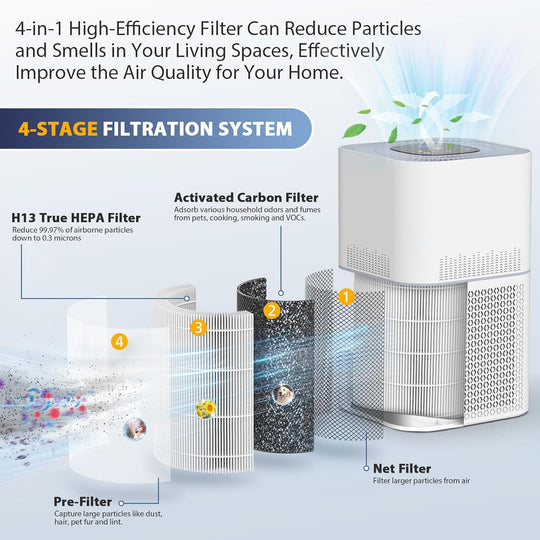 Air Purifier for Home Large Room,H13 True HEPA Filter,Smart Wi-Fi Air Purifier up to 1830 Ft², Air Purifier for Bedroom with PM 2.5 Display for Pet Odor, Dust, Smoke, Wildfire (AP402) About this item 『PM 2.5...Regular price $109.99 -