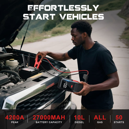 【2025 New】4200A 27000mAh Jump Starter | 10L Diesel & All Gas, 65W Car Charger & QC3.0 Fast Charge, GCZ 12 V Jump Box with LED Display