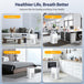 - 【PRE-FILTER & ACTIVATED CARBON FILTER】Fine preliminary filter captures large particles such as dust, lint, fibers, hair, pet fur and helping to extend the life of the HEPA filter; Upgraded high-efficiency activated carbon filter efficiently absorbs household odors from pets, cooking, smoke, wildfire and VOC’s.